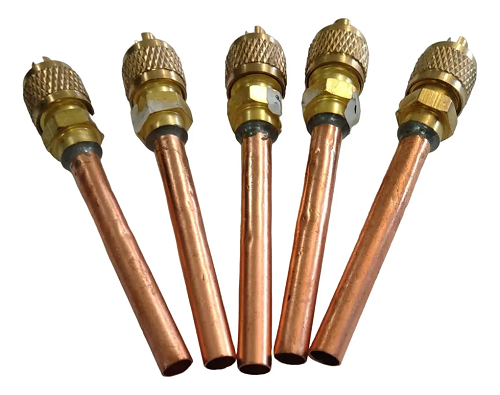 Utilização: Tubo de cobre de 1/4” com uma válvula schrader em uma das extremidades. Usada para carga de trabalho de gás em um sistema de refrigeração, minimizando perdas.